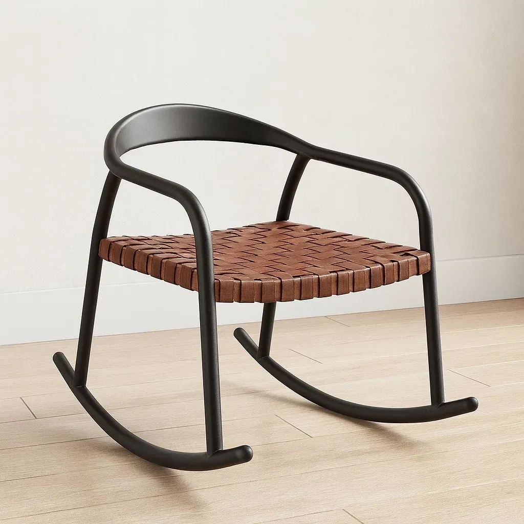 Matériaux : Structure en métal ; siège en cuir synthétique tressé.