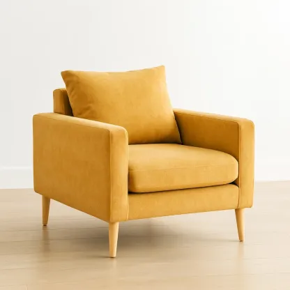 Fauteuil en tissu polyester jaune avec pieds en bois